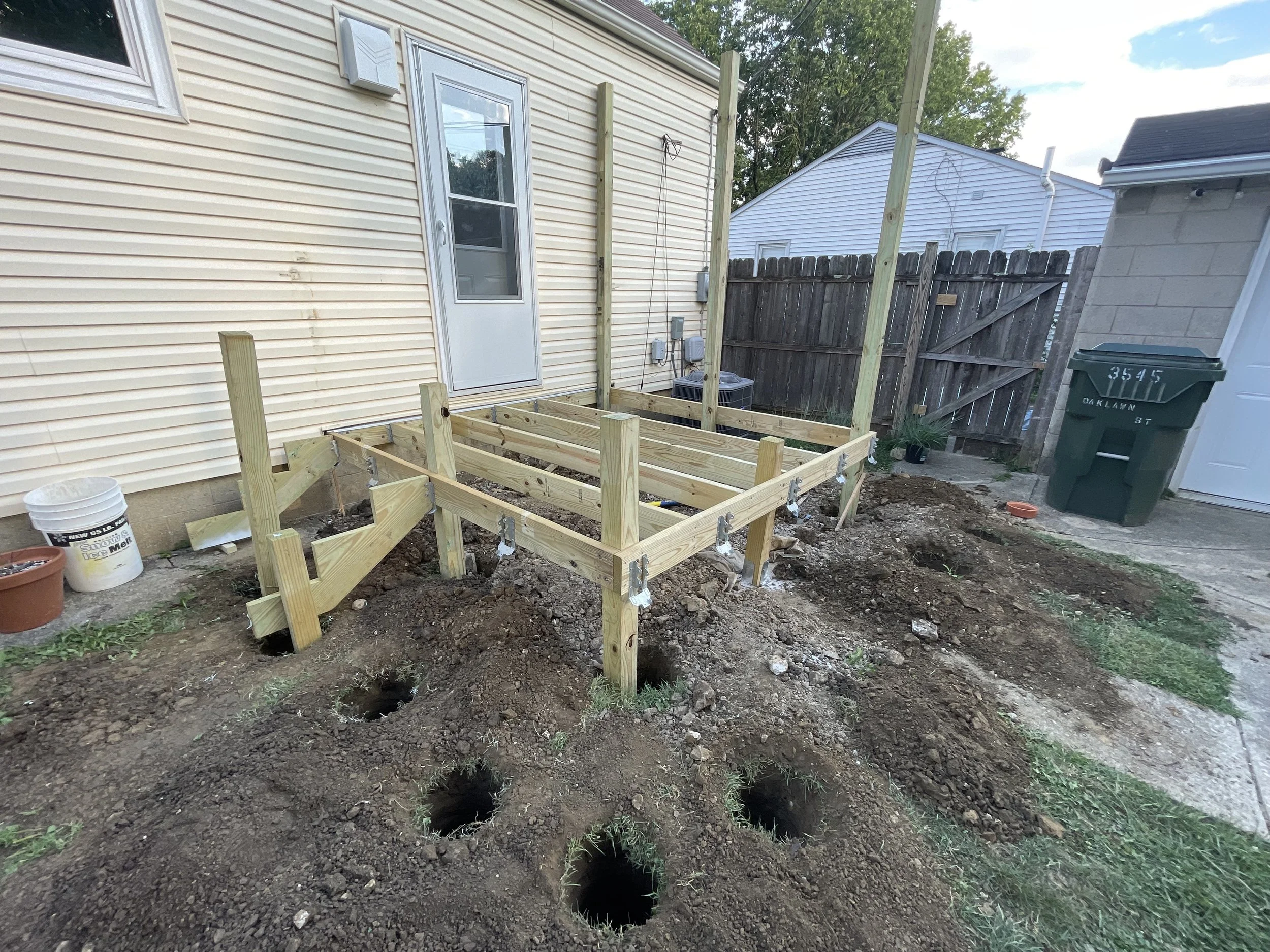 Demolished previous deck, created plan for custom updated deck, dug holes, established foundation and rebuilt deck.